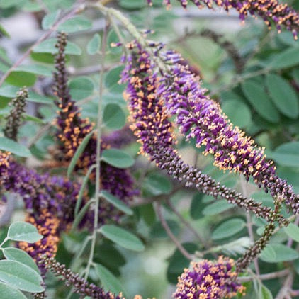 Leadplant is a beautiful shrub-like forb perfect for adding a pop of color and texture to any dry planting with full or partial sunlight. With woody stems and fifteen foot roots, it may take a few years to establish, but once it does it is an extremely resilient plant, tolerating long drought periods and even wildfires, as well as resisting herbivory from deer and rabbits. Its colorful blooms attract a staggering diversity of pollinators and its roots harbor nitrogen-fixing bacteria that improve soil quality, making it a great choice for the ecologically conscious gardener.